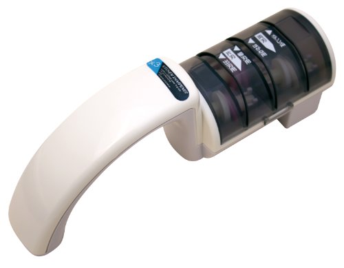 Water rolling system lubricates and cools, resulting in superior sharpness.Compact size for storage (approx. 8in x 3in x 3in).Sharpens all straight-edged kitchen and household knives (stainless and iron, single and double edged).Ceramic grindstones, rubber feet for stability and safety while sharpening.Easily and quickly sharpens your knives the way Japanese chefs do!..